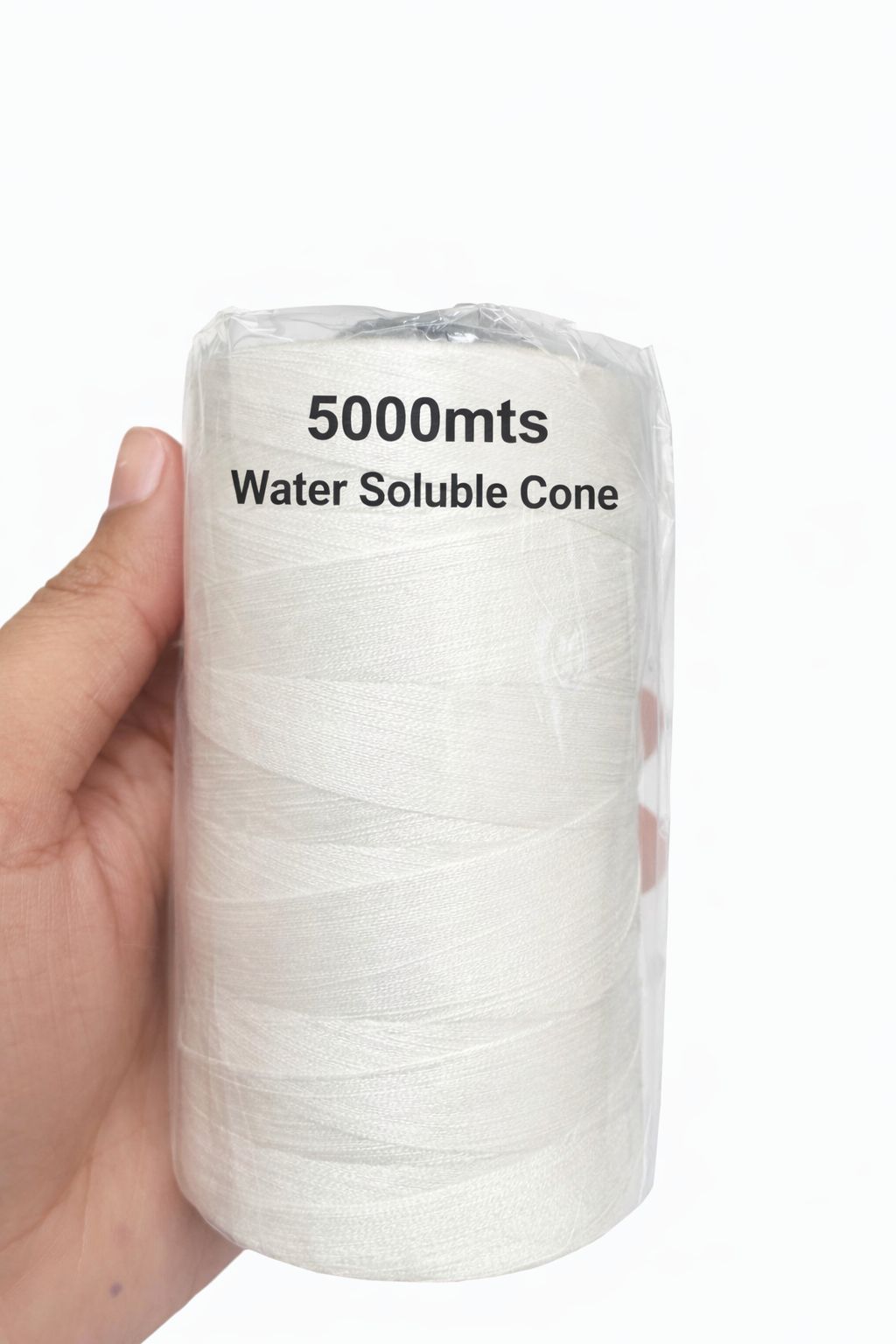 Water soluble cone thread used for temporary stitching of shirts and pants.